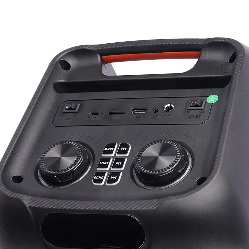 پخش فایل های ذخیره شده با پشتیبانی از فلش مموری USB و کارت حافظه میکرو SD، بهره مندی از پورت ورودی میکروفون و تامین انرژی توسط باتری داخلی لیتیومی با امکان شارژ مجدد از طریق درگاه تایپ سی با ولتاژ شارژ 5 ولت DC . اقلام همراه شامل یک عدد میکروفون، ریموت کنترل، سیم میکروفون، کابل شارژ تایپ سی و دفترچه راهنما و مجهز به کلیدهای فیزیکی تعبیه شده در بالای بدنه جهت مدیریت موسیقی، تنظیم ولوم، نورپردازی و … پشتیبانی از TWS به منظور اتصال همزمان به دو یا چند دستگاه، امکان پخش امواج رادیویی FM. جنس بدنه از پلاستیک مقاوم در برابر آسیب های فیزیکی، دارای دسته جهت حمل و نقل آسان و برخورداری از دو عدد درایو 8 اینچی و توان خروجی 20 وات، پشتیبانی از قابلیت کارائوکه . نحوه اتصال بی سیم از طریق بلوتوث و باسیم توسط رابط جک 3.5 میلی متری صدا و مجهز به نورپردازی RGB جهت ایجاد جلوه بصری زیبا در مکان های تاریک و کم نور و بهره مندی از نشانگر LED جهت نمایش وضعیت شارژ و نمایشگر دیجیتال.